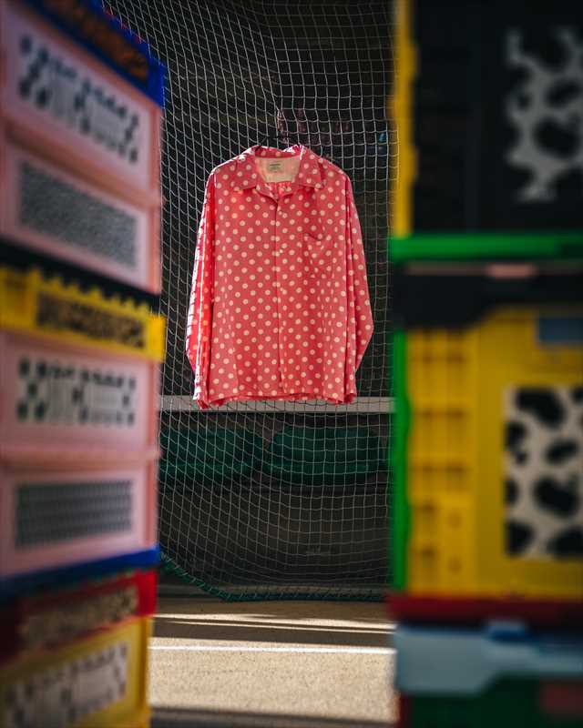 レーヨン素材で製作された©SAINT Mxxxxxx RAYON SHIRT DOT Pink (レーヨンシャツ)。