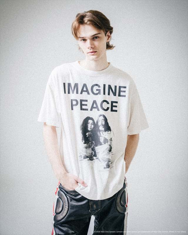 ジョン レノンとのコラボレーションで製作されたで製作された©SAINT Mxxxxxx x JOHN LENNON JL_SS T-SHIRT IMAGINE PEACE White (Tシャツ)。 フロント、バックにプリントが施されております。 全体的にヴィンテージ加工が施されております。 縫製や加工に至るまで、リアルなヴィンテージ感を追求して仕上げられたこだわりの一着となっております。